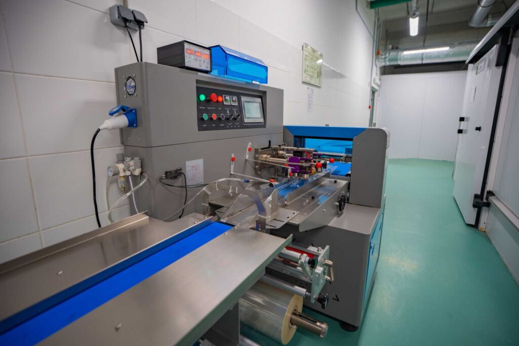 Плёнка оборачивает продукт, после чего продольно и поперечно запаивается, образуя плотный, аккуратный шов.