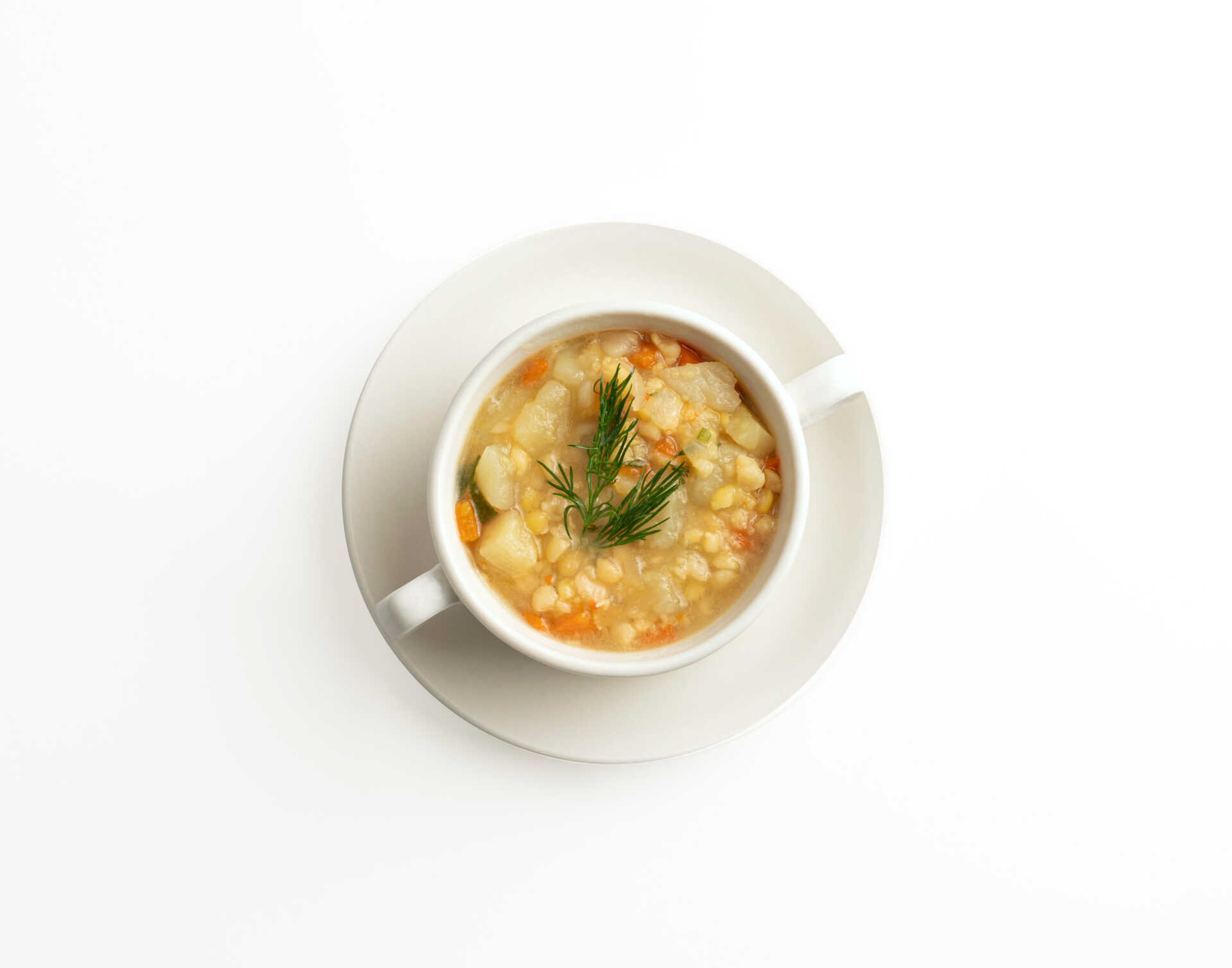 Состав: говядина, солёные огурцы, перловка, картофель, морковь, лук