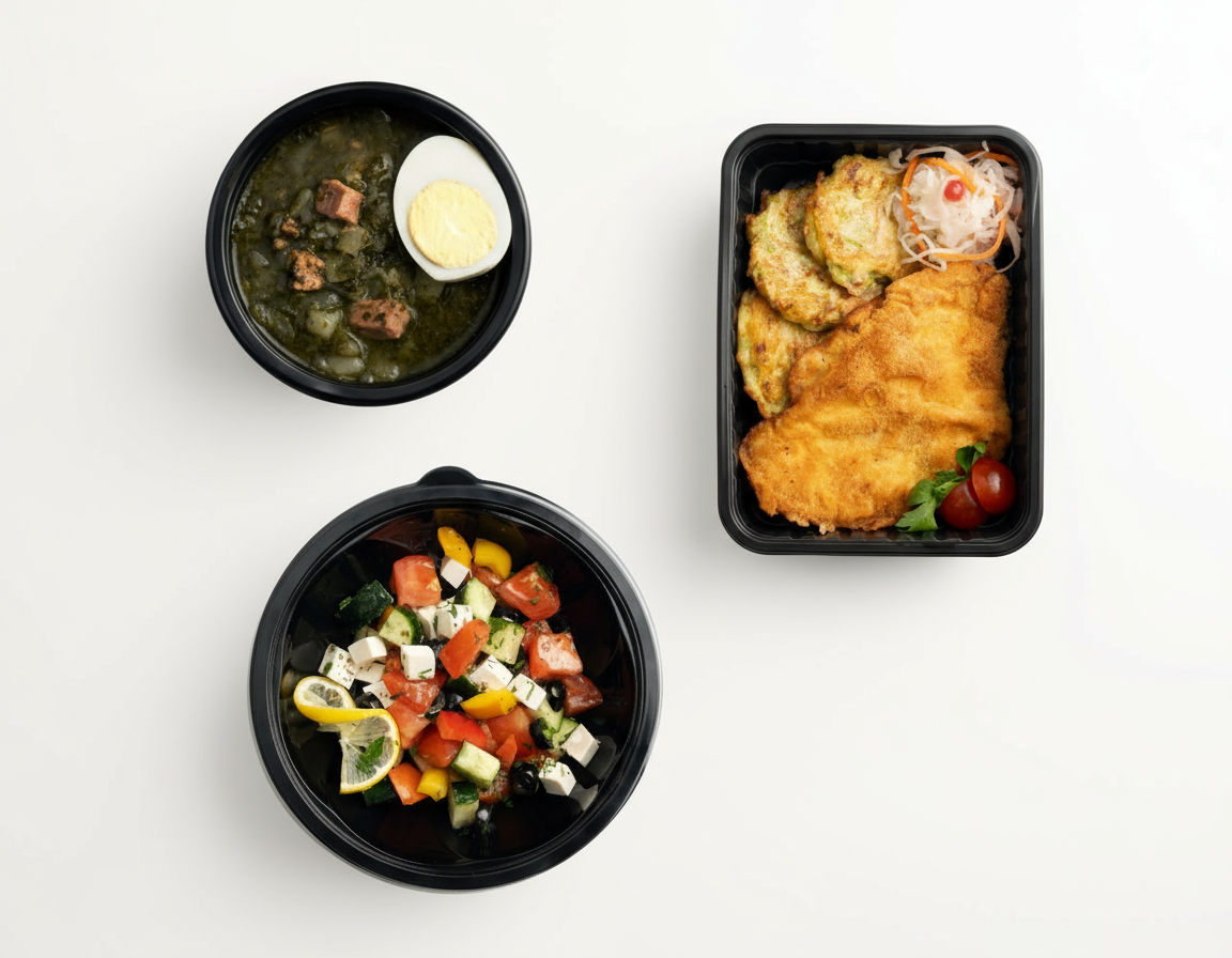 Состав: 2 салата, суп, 2 горячих с гарниром, 2 напитка
